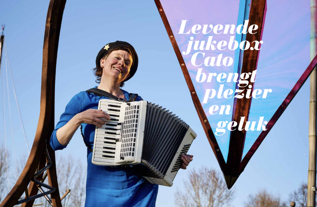 Op feestjes, bootjes en in buurthuizen: zangeres en accordeonist Cato Fluitsma zingt en speelt een jukebox vol liedjes voor iedereen. Vandaag treedt ze op voor ouderen met dementie in Huis van de Wijk De Koperen Knoop in de Staatsliedenbuurt.